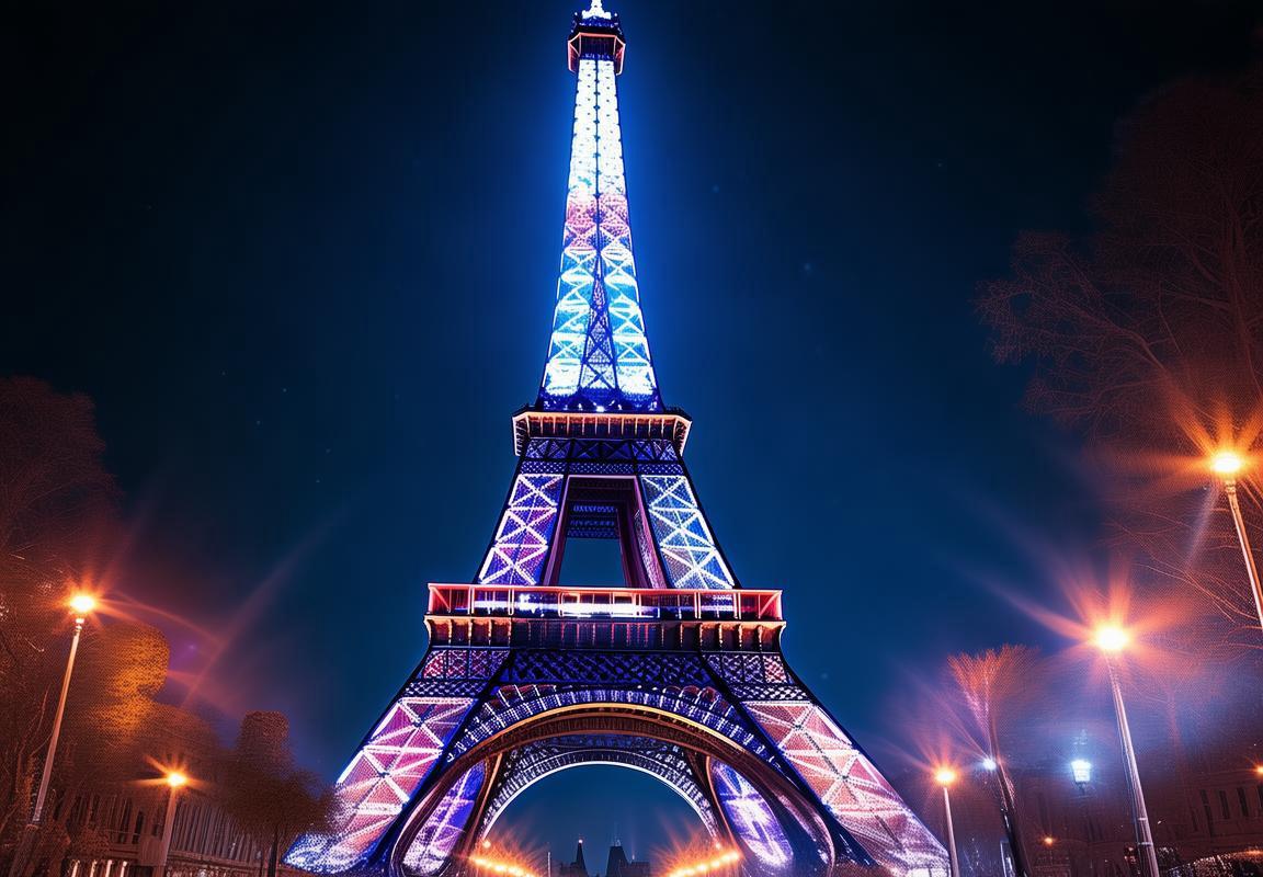 2. 埃菲尔铁塔的灯光在这一刻亮起,金色光芒洒满整个巴黎夜空。它仿佛在为胜利者献上最璀璨的礼赞。